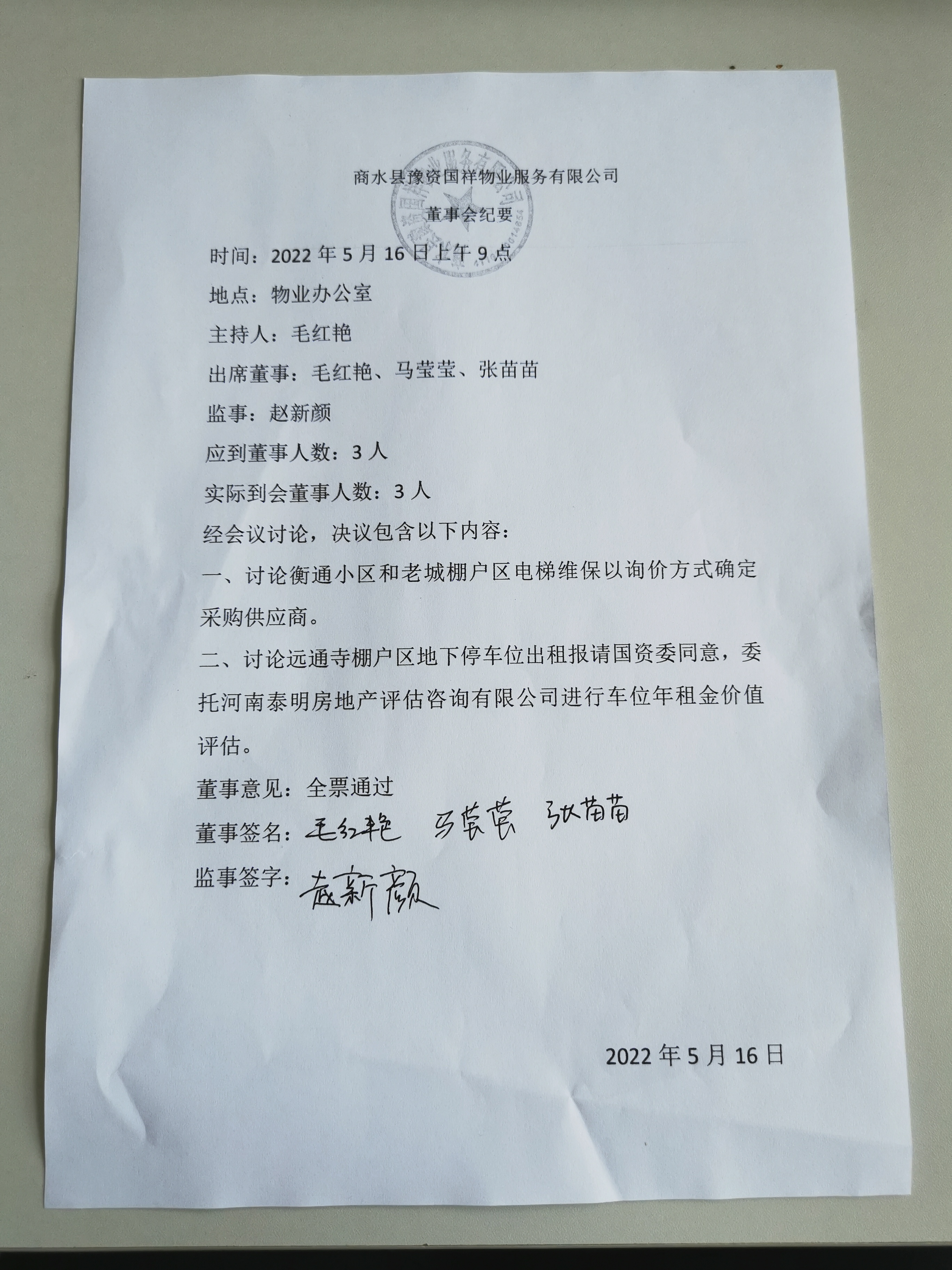 商水縣豫資國(guó)祥物業(yè)服務(wù)有限公司詢價(jià)紀(jì)要